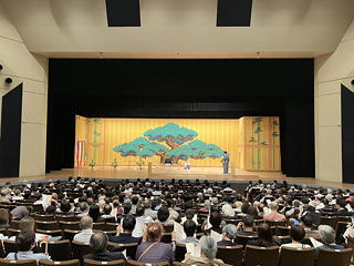 変更先の会場は小田急線伊勢原駅から徒歩15分ほどの伊勢原市民会館で、ここで相模太郎氏・タニレイコさんと合流しました。ところが、16時半開演という触れ込みだったのにその10分前にホールに入ったところすでに舞台上で狂言が演じられていたのにはびっくり。もっともこれは目当ての本職能楽師によるものではなく大山能楽社保存会の皆さんによる仕舞と狂言で、その主役はおおむね子供たち(ただし地謡は大人)です。したがって次々に登場する少年少女たちの仕舞(ご当地物「道灌」と脇能「鶴亀」「岩船」「竹生島」が多い)は「引き続きがんばれ」と応援したくなるものばかり(でも自分がやったらとてもこんなふうにはできない)でしたが、我々が入場したときに演じられていた狂言「痺り」に出演していた少年はまことに見事な太郎冠者ぶり(主人役は大藏流・石井信也師)で、これにはいたく感心してしまいました。