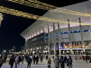 初めて訪れるKアリーナ横浜は、横浜駅から徒歩15分。開演30分前にホールに入ってステージの様子を観察すると、これまでYouTubeで見てきたとおりの機材配置で、上手にはベーシストのJustin Chancellorの立ち位置(その足元には驚くべき物量のエフェクトボードがあるはず)、反対の下手はギタリストのAdam Jonesの立ち位置(足元のモニター群に隠れてエフェクトボードとフットペダル)で、その袖寄りの位置にトーキング・モジュレーターをセットしたマイクと2台のキーボードが置かれています。後列中央にはBeat公演以来3カ月ぶりの来日となるDanny Careyのドラムセットがありますが、もちろんBeatのときとは構成が異なってより大規模なもの。そしてボーカルのMaynard James Keenanの立ち位置はドラムセットの隣(下手寄り)です。