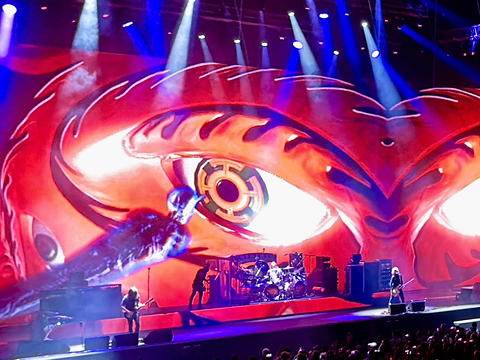 そんな具合に最後の最後でほのぼのしましたが、演奏中は圧倒的な音圧のギターとベース、これまた圧倒的な音数の重戦車のようなドラム、暗闇の中からアジテートしてくるボーカル、さらにそのダークな音世界を可視化する視覚効果に威嚇されっぱなし。一貫して期待を裏切らない、それどころか予想を遥かに超えるライブでした。長年さまざまなロックのライブを見てきていますが「このバンドは化け物だ」と震撼したのはこれが初めてです。このままではしばらくうなされそう(褒め言葉)なくらい強烈なTool体験でした。