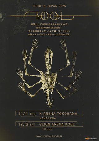 Kアリーナ横浜にて、Toolのライブ。1990年結成、1992年メジャーデビューのこのバンドは、そのソリッドでヘヴィーなサウンドとポリリズム・変拍子を多用する楽曲の難解さ、そして独自のダークな歌詞世界とで、活動初期から唯一無二の音楽性を示すバンドとして知名度を高めていましたが、私がToolの音楽に初めて接したのは遅まきながらコロナ禍の中、極端に寡作な彼らの5thアルバム『Fear Inoculum』(2019)の評判を耳にしたときです。以来、このバンドのライブを一生のうちに一度は観ておきたいと思っていましたが、ついに、単独来日としては2007年以来18年ぶりとなるこの機会を捉えることができました。