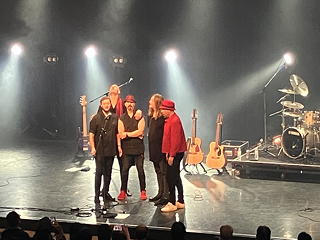 Simonが出てきてもしばらくは演奏が始まらず、この間にギターやベースのチューニングが行われていましたが、ここで手持ち無沙汰なドラマーのMikaelが茶目っ気を発揮。自分のところにもコーラス用のマイクがあるのをいいことに盛んに(変顔ならぬ)変声ヘンゴエを繰り出し、挙げ句の果てに澄まし顔で「Don't give the drummer a microphone.」とやって大ウケでした。さらにPetterが12弦ギターのチューニングの大変さを冗談まじりに嘆いてから「OK」の声が掛かり、アンコール曲に入りました。