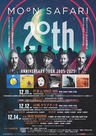 クラブチッタ(川崎)にて、Moon Safariのライブ。スウェーデンのバンド(ただし歌詞は英語)である彼らは、変拍子を多用した長尺な楽曲が多いことから一応プログレッシヴロックにカテゴライズされますが、その売り物はむしろ親しみやすいメロディーと美しいコーラスにあり、そのためについた枕詞が「青春プログレ」。ジョークのようにも聞こえますが、確かにこれは言い得て妙という感じです。
