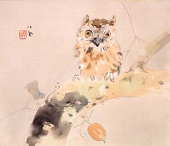 また、身近な動物と言えば犬と猫が代表格ですが、特に猫は画家の創作意欲を刺激する生き物であるらしく、川合玉堂、小林古径、奥村土牛といった大家がストレートに猫を描いているほか、山本丘人《壁夢》では紫陽花の下に、小針あすか《珊瑚の風》ではハマナスの浜辺にそれぞれ猫がちゃっかり座り込んでいました。先ほど古典芸能愛好家には興味深いはずと書きましたが、愛猫家にとってもこの展覧会は楽しいかもしれません。もっとも、私自身は猫よりも鳥の方が好きなのか、これらの猫作品以上に竹内栖鳳《みゝづく》の方がお気に入りになってしまいました。