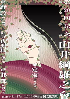 国立能楽堂(千駄ヶ谷)で金春流能楽師・山井綱雄師主宰、第20回記念「山井綱雄之會」。この会は2015年の第10回と2020年の第15回、2023年の第18回を拝見していますが、今回は第20回という節目の公演です。
