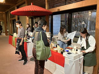 ここで20分間の休憩をはさんでから、いよいよこの日のメインイベントである山井綱雄師の「定家」です。なおロビーにはいくつかの出店がありましたが、いつもの能楽書林に加えて白瀧呉服店は山井綱雄師の大学での同級生つながり、宇治茶の森半は小中学校の同級生つながりなのだそう。どれだけ人脈が広いのか……。