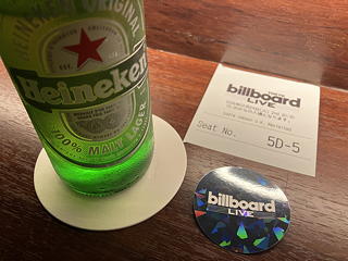 一通り機材チェックを終えたら最上段のカジュアル席に戻って、ハイネケンを飲みながらのんびり開演時刻を待ちました(なお、今回のショウは演奏中の写真撮影が禁止されています)。