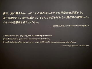 そのことを裏付けるように、《第5ソナタ(海のソナタ)》の前後ではチュルリョーリスの海にまつわる言葉が引用され、チュルリョーリスが作曲した交響詩「海」の一部がスピーカーから流されていました。なお、この曲が遠くから聞こえてきたとき「なぜ『ツァラトゥストラ』がこの会場で?」と勘違いしてしまったことは内緒です。