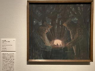 冒頭に記したように、これまでその名前も知らなかったチュルリョーニスの絵を見ようと思い立ったのはレメディオス・バロとの共通性を想像してのことでしたが、実際に見てみると画風はかなり異なりました。シュールレアリスムの系譜に位置付けられるバロの精緻な絵が持つ形態・色彩の鮮明さやあざといまでの寓話性に対して、チュルリョーニスの絵は象徴主義とは言いつつもくすんだ色彩と柔らかな描線でリトアニアの風土を再構築したかのような牧歌的な味わいがあり、本展の第2章までは言葉を選ばずに言えば「地味」ですらあります。それでも音楽と絵画とを融合させようとする独創的な試みにはいたく感銘を受けたのですが、第3章に入ると様相が一変し、民族主義の主張を明らかにした《リトアニアの墓地》《プレリュード(騎士のプレリュード)》を経てさらなる思想の高みに達した観のある《祭壇》《レックス(王)》に至る展開は畳み掛けてくるよう。特に最後の《レックス(王)》は、これ1点だけでも本展に足を運んだ価値があったと思わせる作品でした。