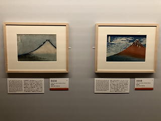 目玉展示の一つは、現存屈指の優れた摺り・保存状態を誇るという《神奈川沖浪裏》。そしてもう一つは、「赤富士」として知られる《凱風快晴》の希少な藍摺販、通称「青富士」です。この「青富士」にはさすがにびっくり、なんだこれは?という感じです。
